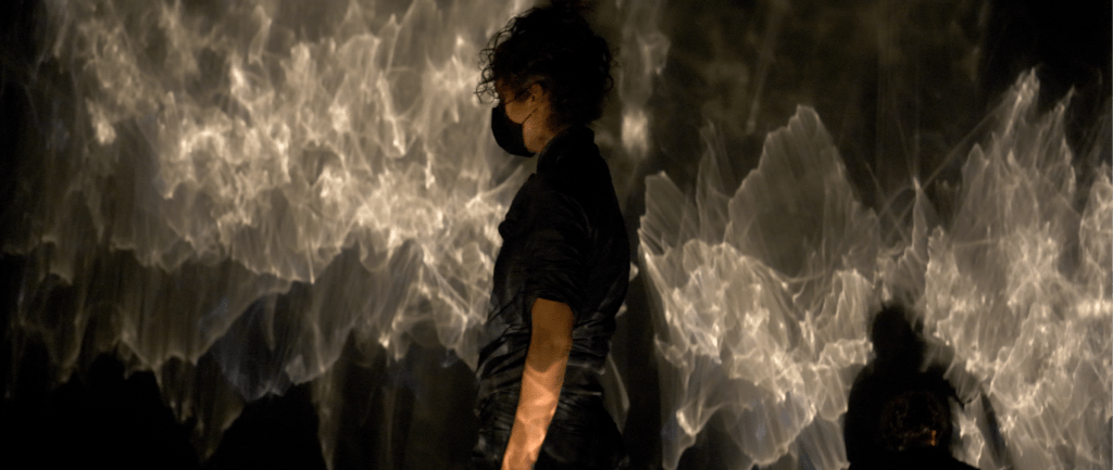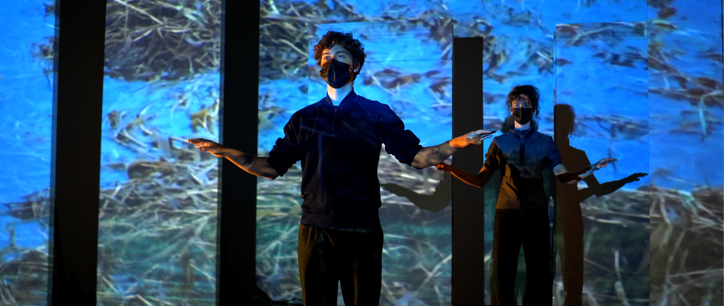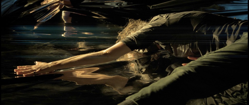 A duet commissioned by Dancing on the Edge Festival 2021. A performance work that animates the vibrations of sound through a fusion of movement, light and projected reflections. Multiple microphones are used on different surfaces and instruments and manipulated performatively by the musicians. Through choreographic sequences and scores, projected images and light, the work attempts to envelope us in a multimodal experience within the textures and surfaces of the bodies and space.